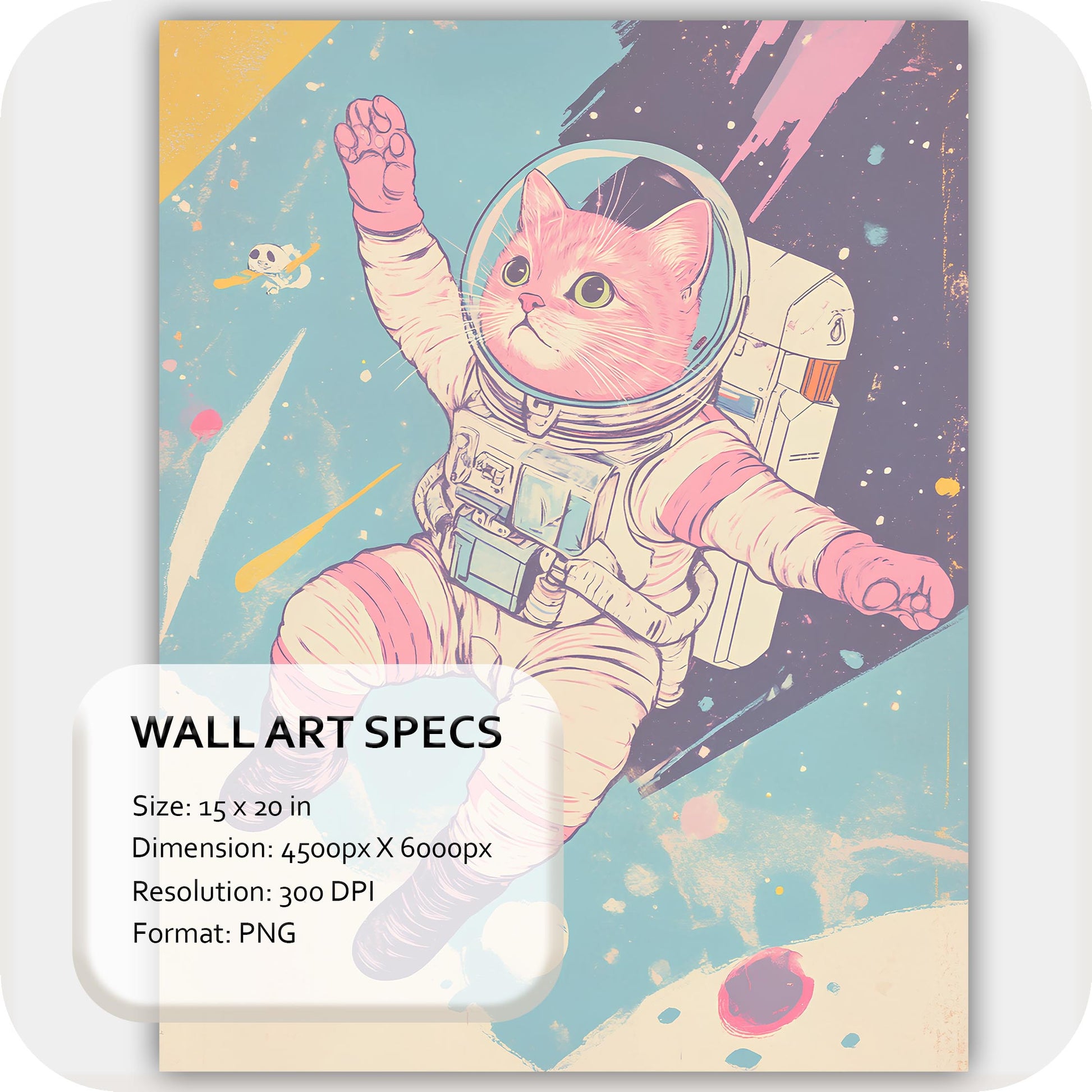 Wall Art Digital Download that fuses cosmic wonder with playful imagination. Cosmic Paws features an adventurous astronaut cat floating through a pastel galaxy, blending retro-futuristic charm with a hint of whimsy. It’s the perfect piece for dreamers, cat lovers, and anyone who enjoys art that doesn’t take itself too seriously.