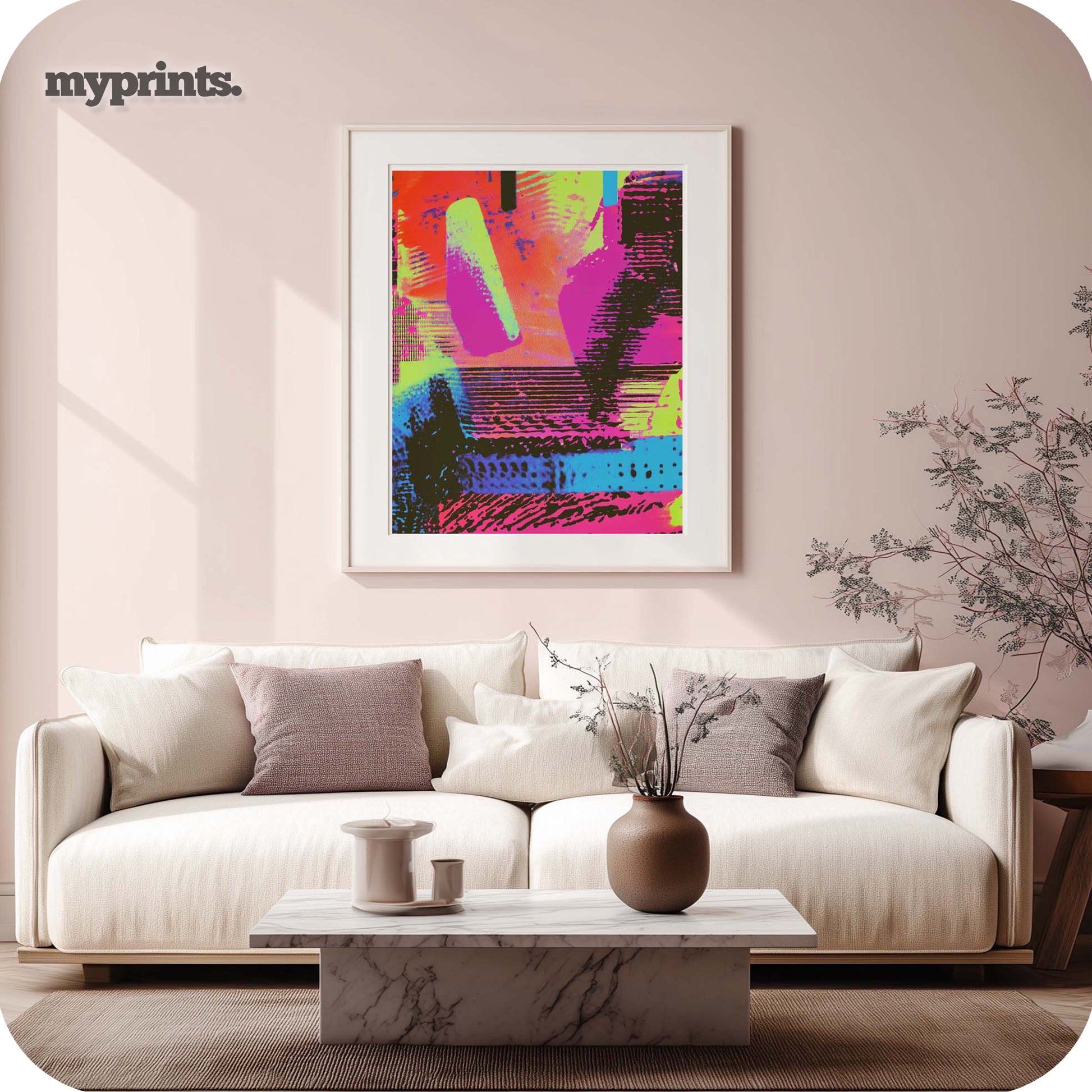 Designed for effortless printing and styling, this high resolution artwork adds color, attitude, and contemporary impact to creative studios, music rooms, or eclectic interiors.
